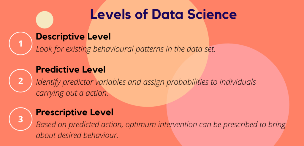 I noted with my own work that clients found it useful to understand the application of Data Science on three levels: